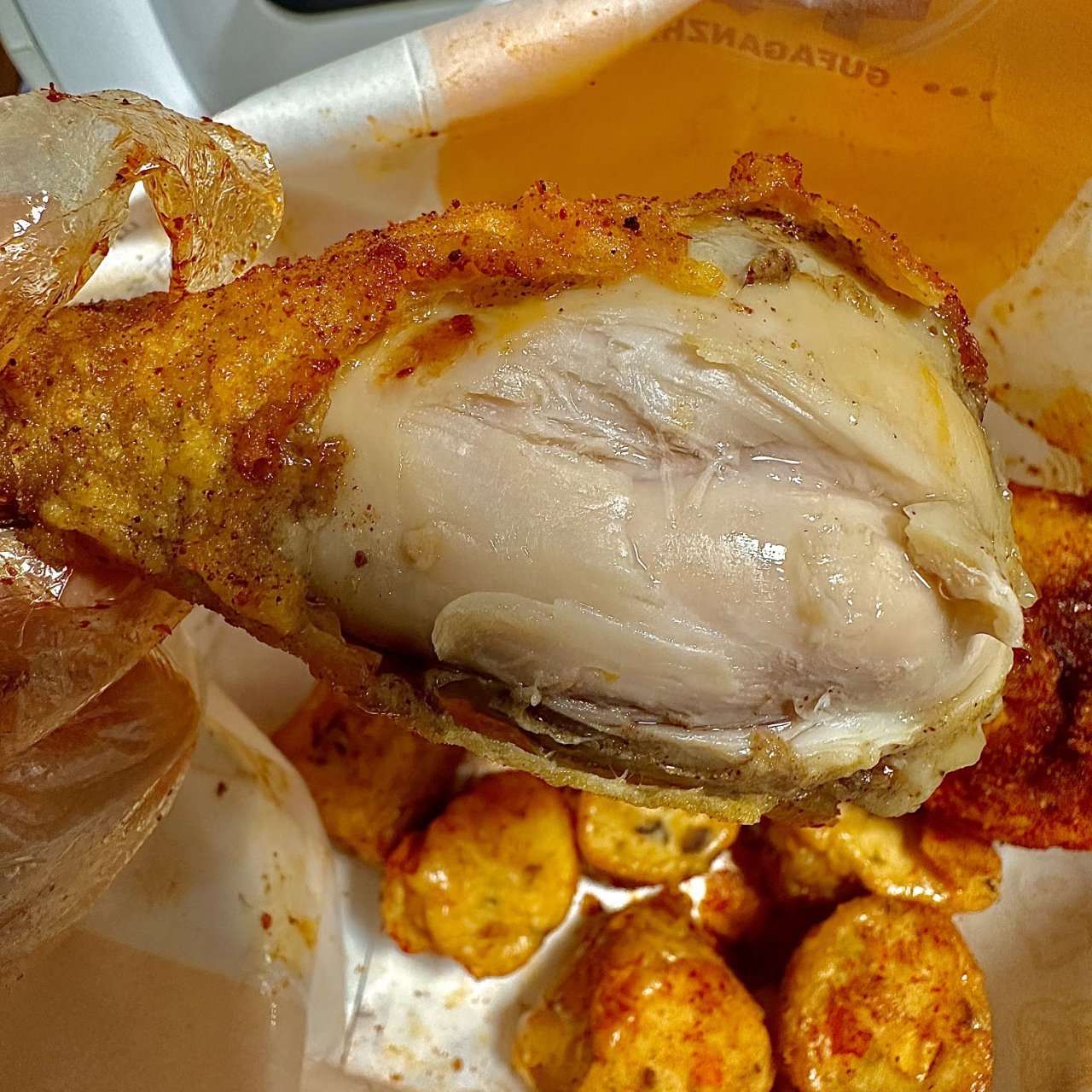 內裏的雞肉如瀑布般湧來——我的天!!這是什麼神仙嫩度?簡直像被雲朵包裹,又似絲綢般順滑,每一絲纖維都飽含着豐盈的汁水,咬下去的瞬間,汁水在口腔裏炸開,那是雞肉最本真的鮮甜,和外皮的濃烈風味形成了天衣無縫的二重唱,在舌尖上跳起了熱辣的探戈。