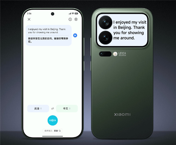 随着软件不断升级,妙享背屏功能持续丰富。最新系统更新中,背屏新增“对话翻译”功能,用户用中文对手机说话,背屏即可实时显示英文译文,极大提升了跨语言沟通效率,此外还加入了“大头贴”动态照片模式,进一步拓展了影像创意边界。