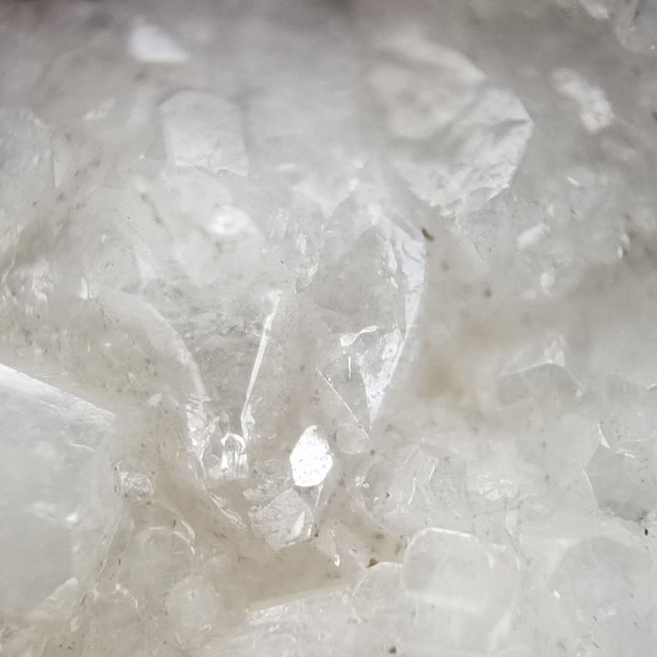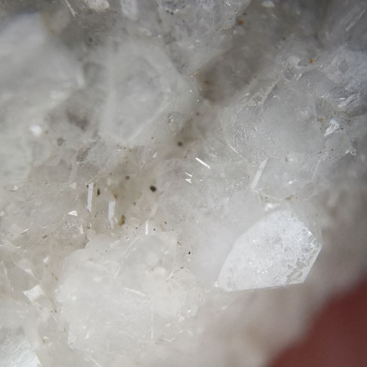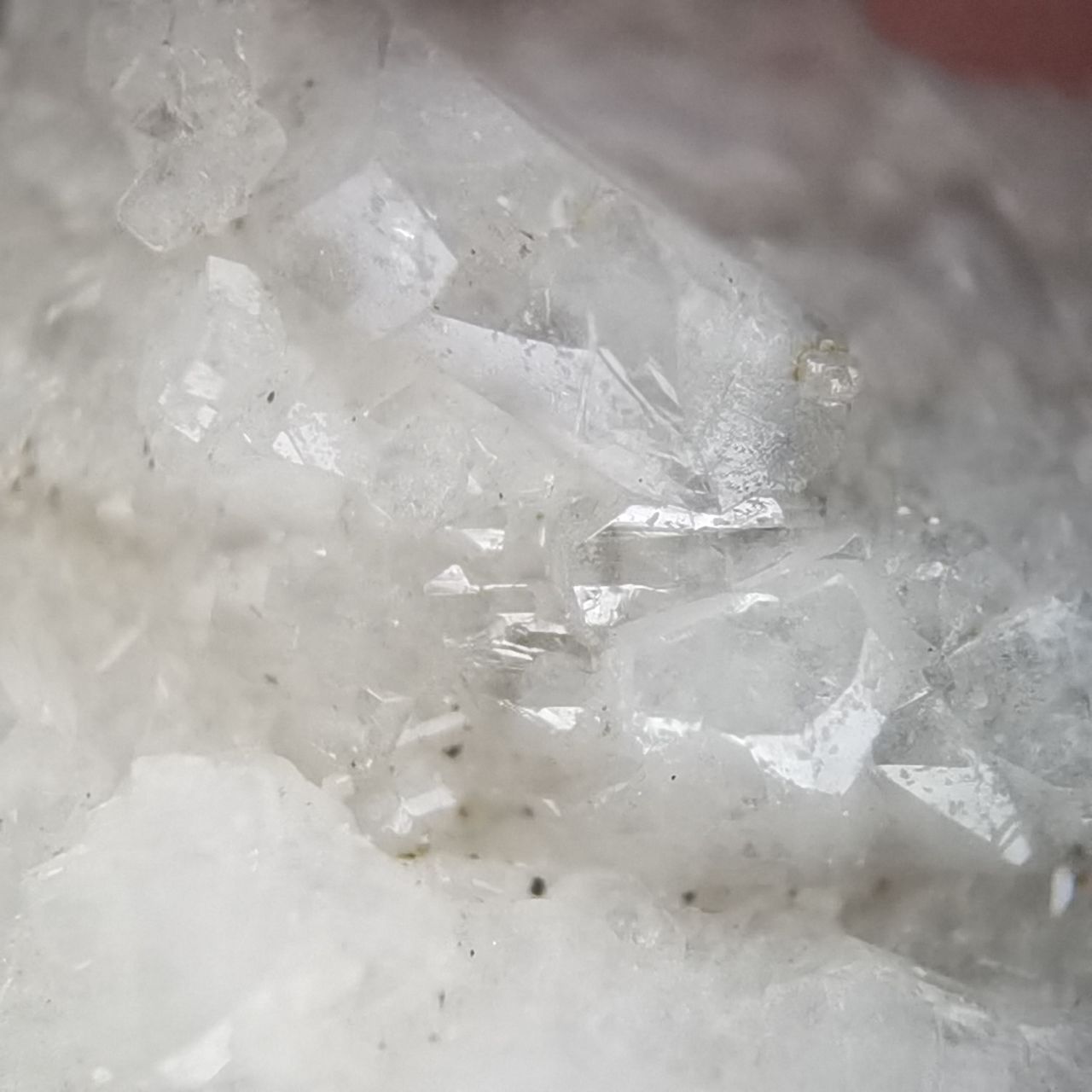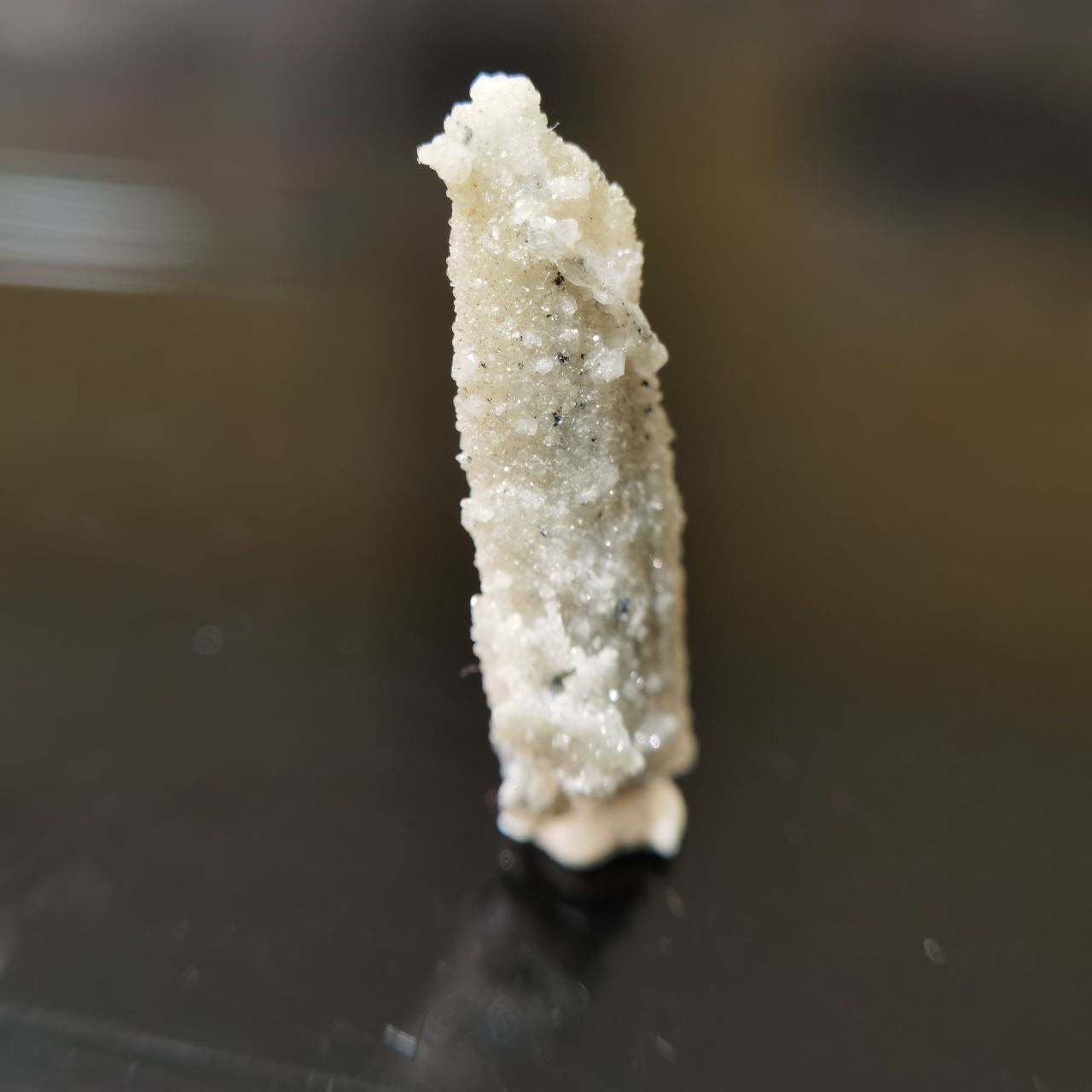 本块标本的白铅矿看不出晶体,铅矾晶体较小分布在整块底岩上,高倍微距可以看到一些晶体。破山的白铅底岩许多都是穿插状样式,而这块只是单独的一根晶体,我感觉一般般,因此卖出