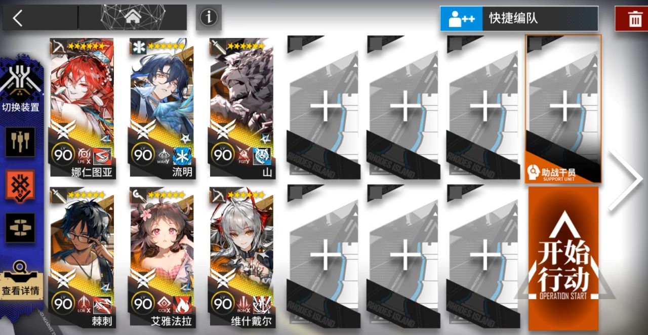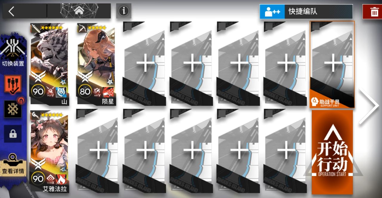 放个山,小羊朝左,陨星朝下挂机。山几乎没怎么攻击。陨星可换其他干员。需要把下面雨伞一样的怪打掉,这样对面会被雪崩吹下去。