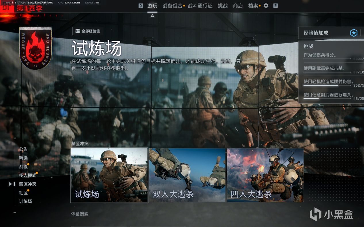 自打第一赛季更新,大逃杀排不到人,油田被大灯泡追着射,每天打开战地六在匹配界面一下子不知道玩什么,然后突然注意到这个叫“试炼场”的模式,结果一玩才发现这才是第一赛季最棒的模式啊。最重要的是,这模式居然算大逃杀里的,没有本体也能免费玩!