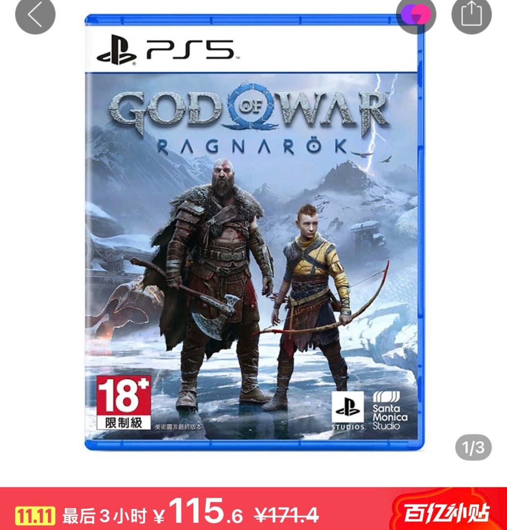 战神五作为ps5世代价格最美丽的第一方游戏,之前说过115~120都算得上好价,115算是鲜有出现,120的好价带有特典小贴纸,各位自行斟酌,哪一个遇到了都是不错的。