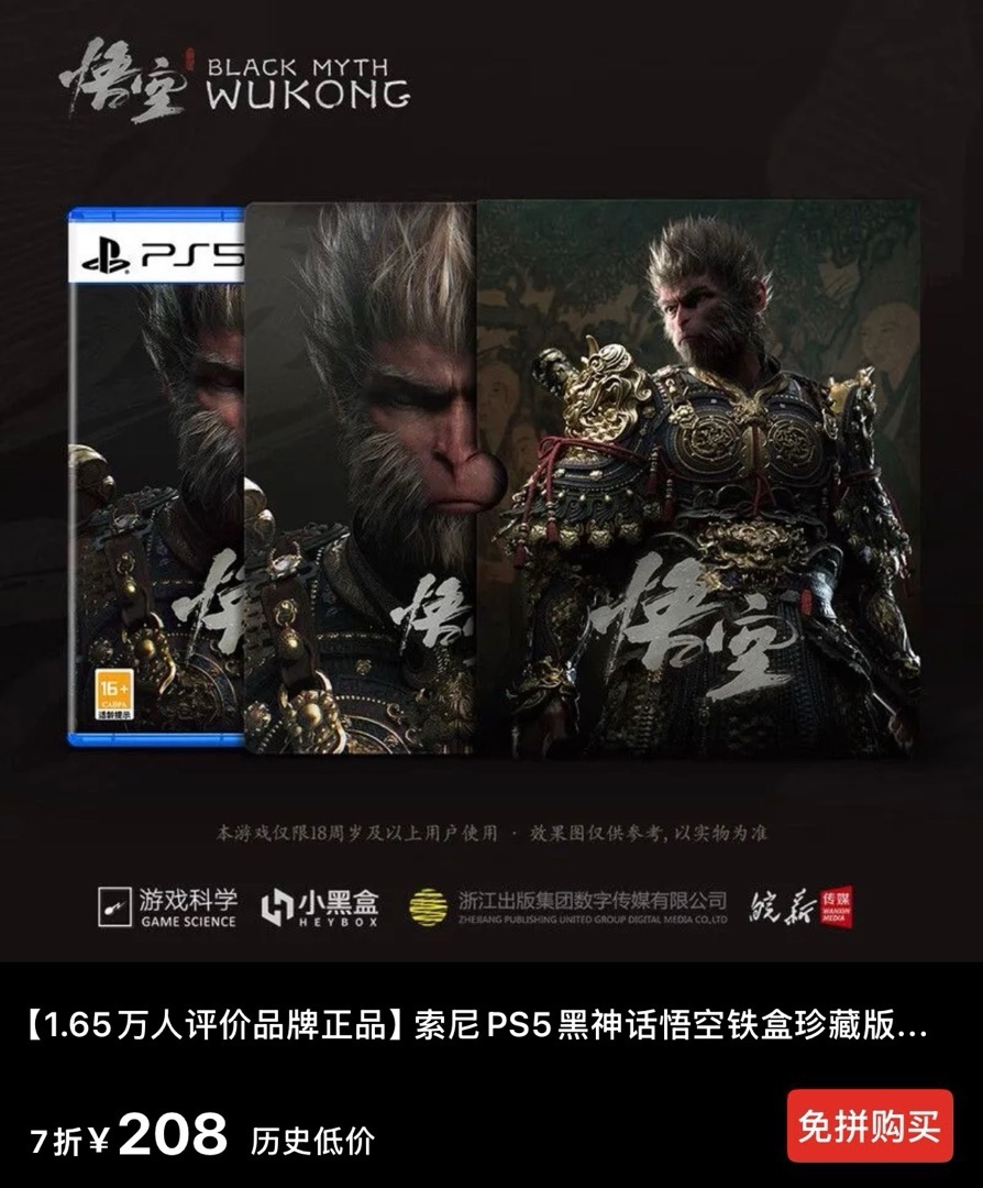 黑神话这几天补货,价格也是有所跌落,喜欢铁盒版本的朋友们不妨入手收藏一张,但你要说后面会不会再降几块钱,趋势所看,我个人的答案还是肯定的。