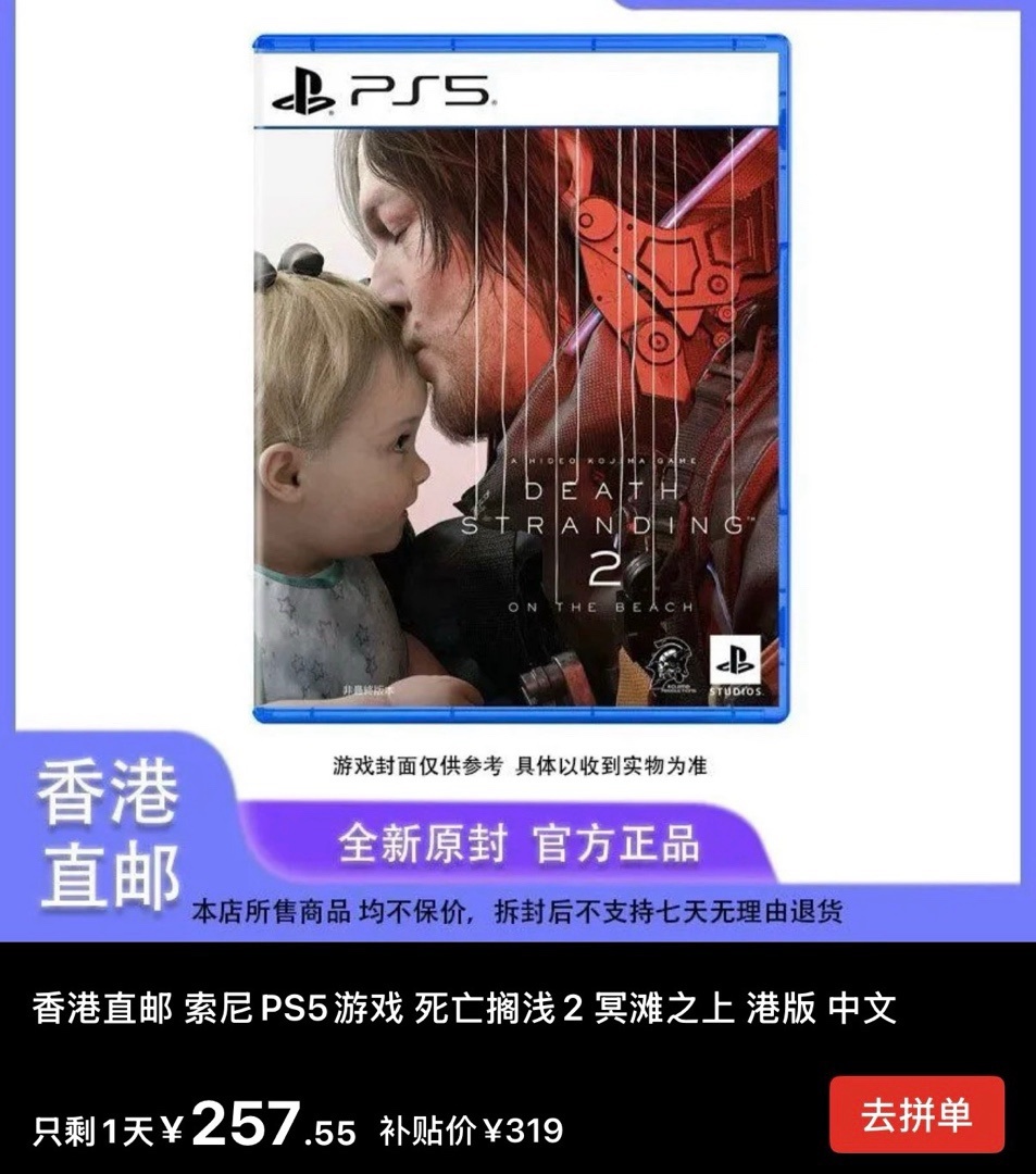 死亡搁浅2港版受再版影响降价,这个价格这两天是屡见不鲜,不是一个需要抢购的价格,仅85券的价格让250出头的日版淡然无光,瞬间失去了价格竞争力。