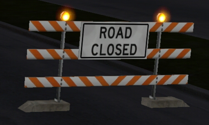 在路上會有路障進行攔截,路障會由警示牌組成的一道屏障,而後方則會橫停兩輛警車,但他們部署路障的幾率着實是很低,並且在部署後很難保持原樣,當一個路障被部署,會刷出兩到四名警察甚至更多。