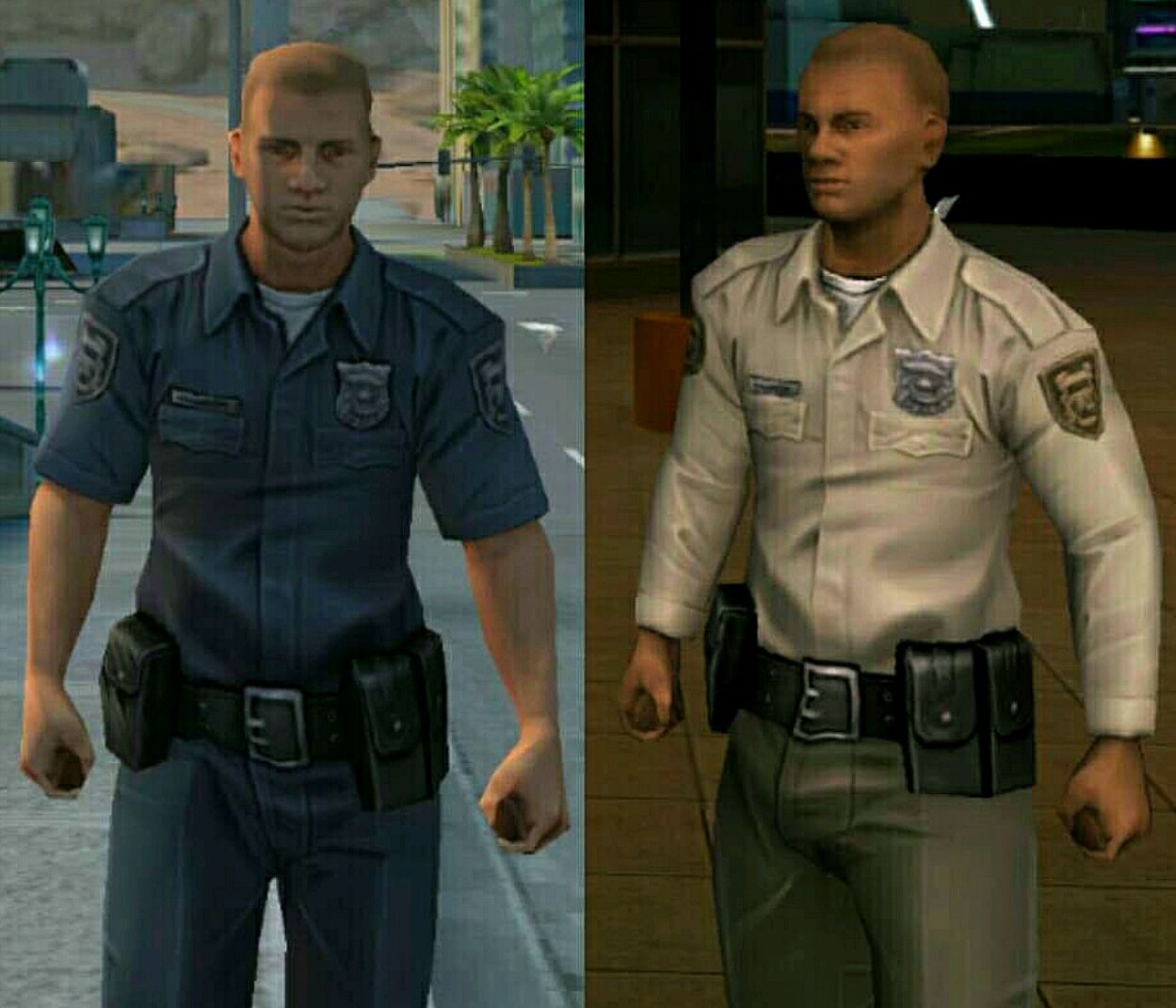 維加斯警員穿着輕薄的海藍色或沙漠黃制服襯衫和長褲,左胸彆着警徽,單警腰帶上掛着彈匣包和幾個雜物包。他們的防護十分有限(基本沒有)。在這一等級,他們在徒步時會使用拳頭進行攻擊,如果用槍攻擊其中一個的話他會迅速遠離你,並掏出槍射擊。普通手槍和左輪手槍是他們爲數不多的選擇。