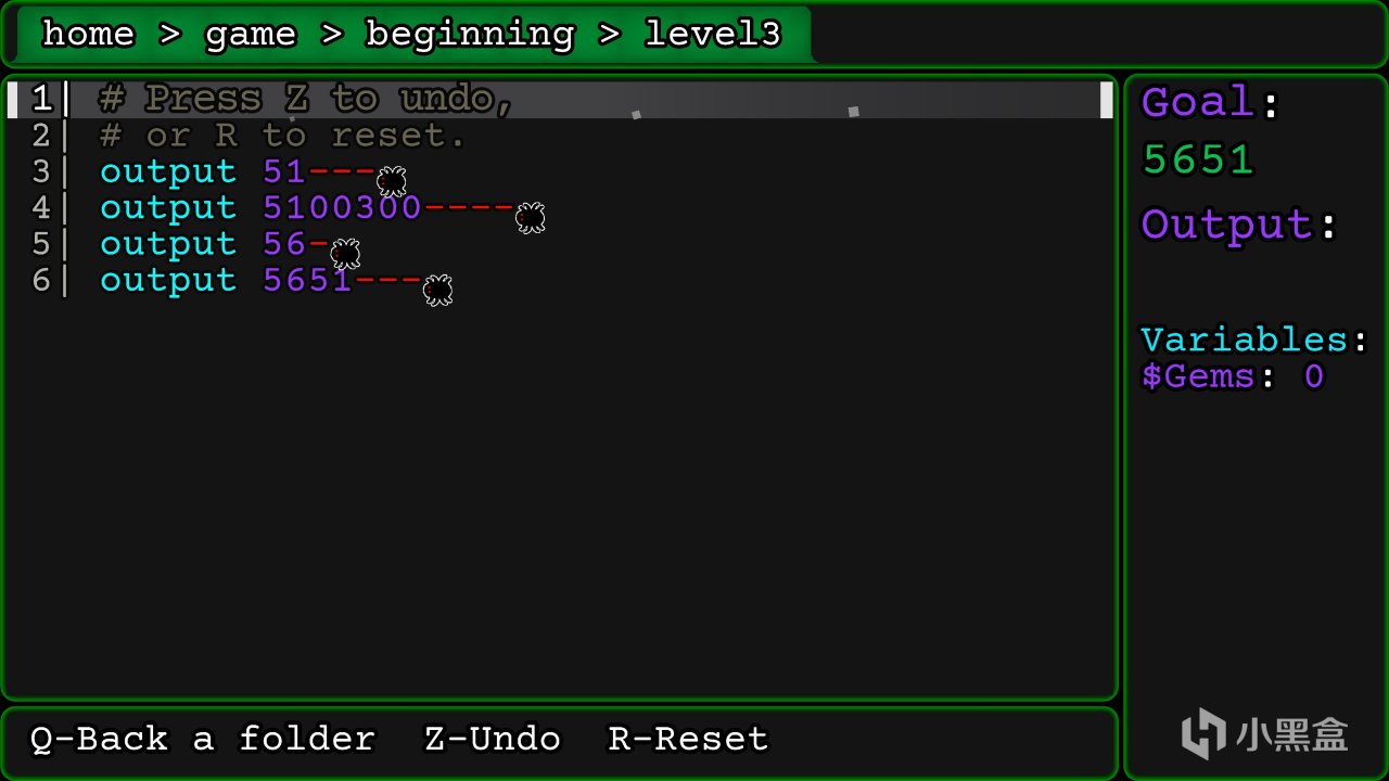 简评:乍看之下是一款硬核的编程游戏,实际上是逻辑解谜,游戏里编程成分其实比重不大,因为它的核心玩法是利用代码语句输出特定的数字。我们需要利用Bug吞噬字符、修改变量,通过非常规的方式达成目标。比如本关目标要求输入145,但是代码语句里只有输出14567,我们可以等待bug把后面的67吃掉来实现目标。不过最好还是稍微有点编程基础,毕竟这游戏没中文,注释也是英文的,完全零基础可能有点吃力。