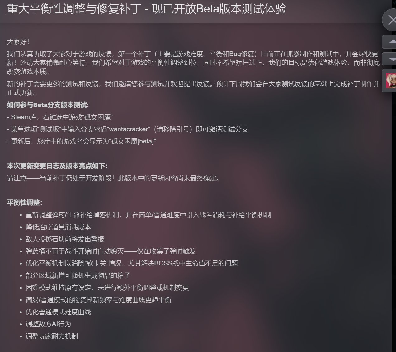 不过,制作组很听劝,增加物资掉落并优化敌方AI。同时,开放了beta测试版本,新增许多平衡性调整。