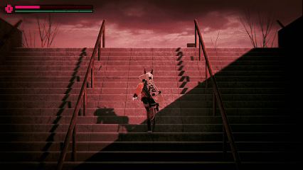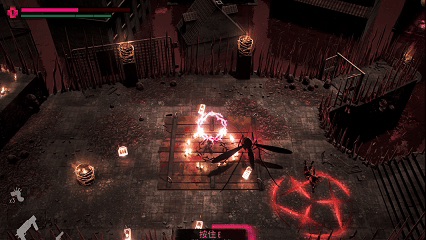 游戏是3D建模,但通过2D/2.5D视角来呈现。2D横版、俯视角、侧视角等不同镜头角度的切换,再搭配上诡秘的血色场景,极具视觉冲击力。女主跌落深井之中,不断拉近的旋转运镜。