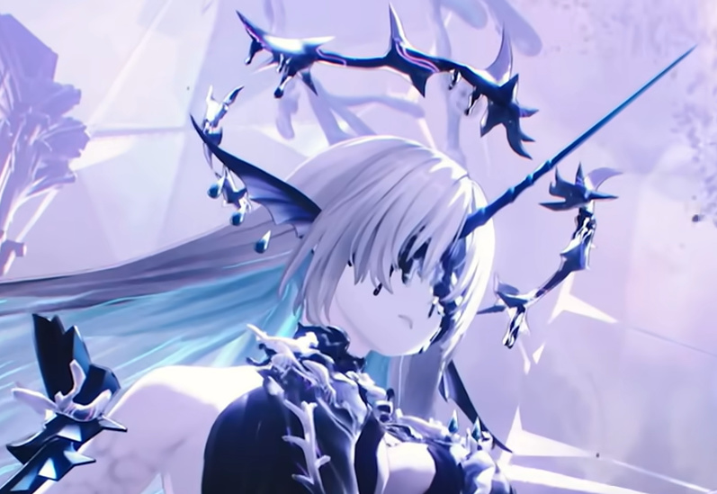 看看芙露德利斯這身建模真的很可愛啊,額頭上長出代表英白拉多的長角,尖尖的耳朵走路時候一晃一晃的,耳邊的裝飾爲英白拉多身邊的四角星,小卡階段的袖尾消失化爲臂鎧,但裙襬變成了鳴式的金魚尾鰭層層飄動,爲了設計更有美感,尾鰭飄動的同時還有一層層波光閃過,似是月華拂過水麪,小卡形態下鳴式象徵的荊棘腳環,在大卡形態中保留下來,還在腳環上添加了閃爍的星光特效,漂浮在空中的裸足透露出氣血良好的淡淡粉色,搭配一閃一閃的移動軌跡,仙氣飄飄。