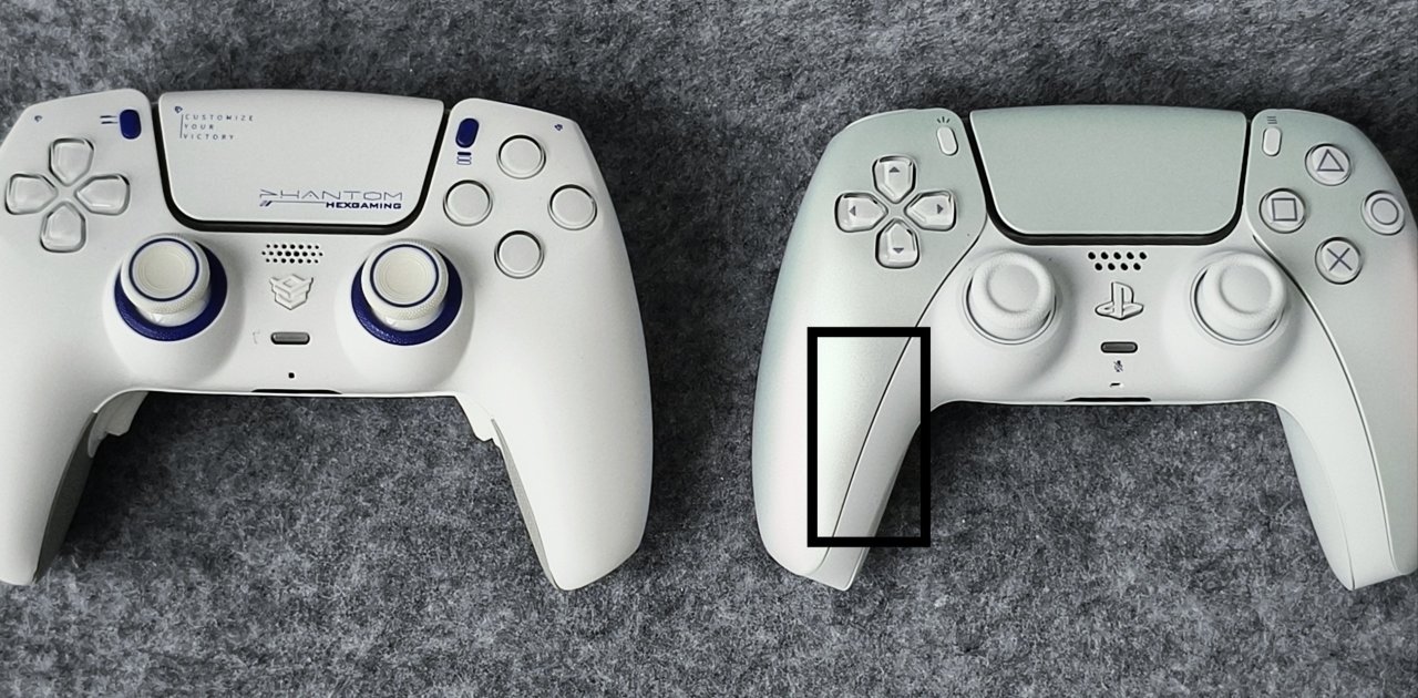 因为黑克斯幻刃只是一个DS5的魔改品牌,因此他只不过是保留了DS5的主板。外壳模具虽然也是DS5的样式,但整体其实是重新开模的,是独立的模具。就比如说看下方图片,最明显的你可以看到黑克斯将索尼的LOGO换成了自己的,且取消了原DS5的腰线设计