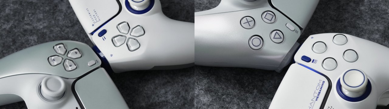 如果大家观察仔细,是可以发现黑克斯其实对于十字键与△〇□Ⅹ这类动作键的外观也有更改。将字符全都隐去了,虽然说外观方面看着更加简约了,但是对于不熟悉DS5布局的人来说可能不太友好。当然我相信都玩改装手柄了,其实对于DS5布局也已经习惯了。