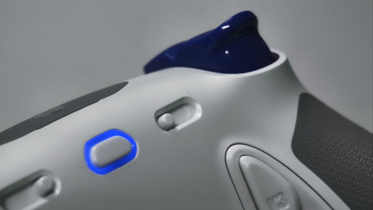 先来说说这个二段式扳机吧,他可以在线性扳机与微动之间进行切换,线性长扳机非常适合赛车游戏,阻尼感很强。微动短扳机适合用来玩射击游戏,并且微动模式下没有虚位,反馈非常清晰,触发也非常迅速。