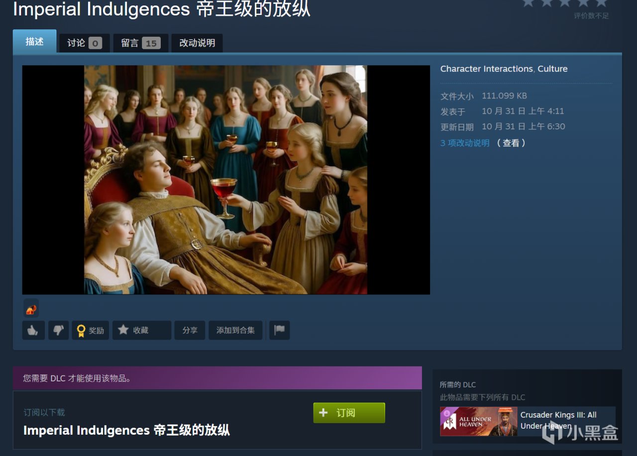 1.狂野宫廷传统(溥天之下 DLC):引入全新文化传统“疯狂宫廷”,霸主角色可豢养高达 999 名侍妾,皇帝角色限 20 名,而所有不满足头衔要求的角色均无法拥有妾室。厌倦后代纳丑妇为妾?只需剥夺他们的帝王头衔,他们便无法拥有侍妾,从而维护血统的纯净。而你本人则可豢养无数侍妾——新增阉割与致盲囚犯功能。除本节提到的修改内容外,其他内容与宫闱权谋机制相同。我还在中华文化组下加入了一个测试用文化可以直接体验。
