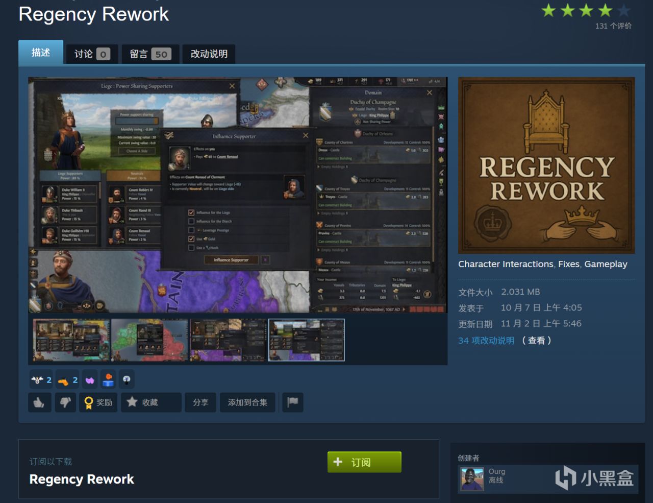 这个模组重新设计了摄政摆动的方式。使用此模组,摇摆值基于封臣和宫廷人员支持。每个封臣以及成年人和宫廷人员都会根据不同的参数(如意见/关系/家庭/特质/等)站在一边: