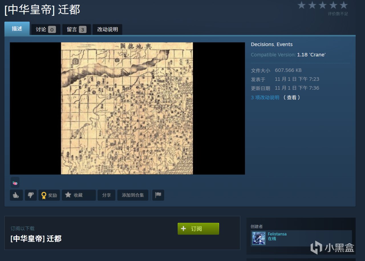 迁都需要花费3000国库,随后会获得500威望,新都会获得5年的增益buff(+10%税收,30%发展度增长)