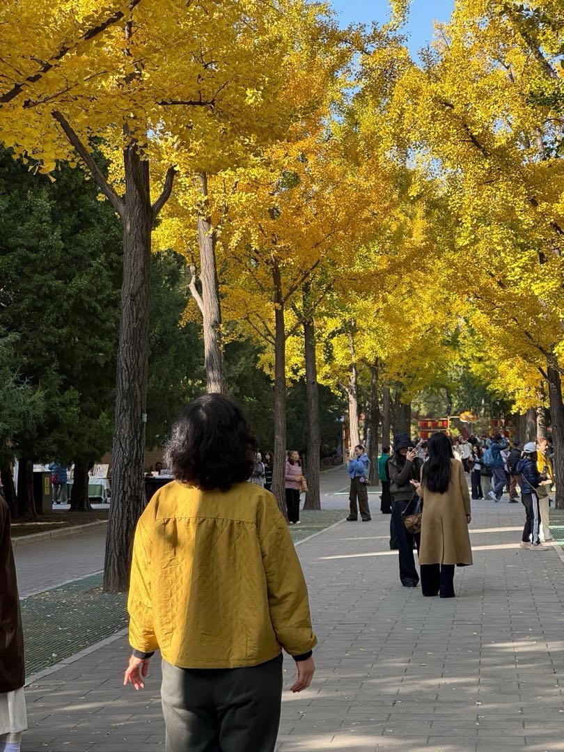 騎車到了地壇公園,也是來到了這哈哈哈,風景特別好看秋景美美的,坐在長椅上看風景也是旅遊裏特別享受的一環。我很喜歡旅遊時候騎自行車,因爲我覺得自行車比起打車更可以近距離體驗這個城市的本身,體驗人文風情