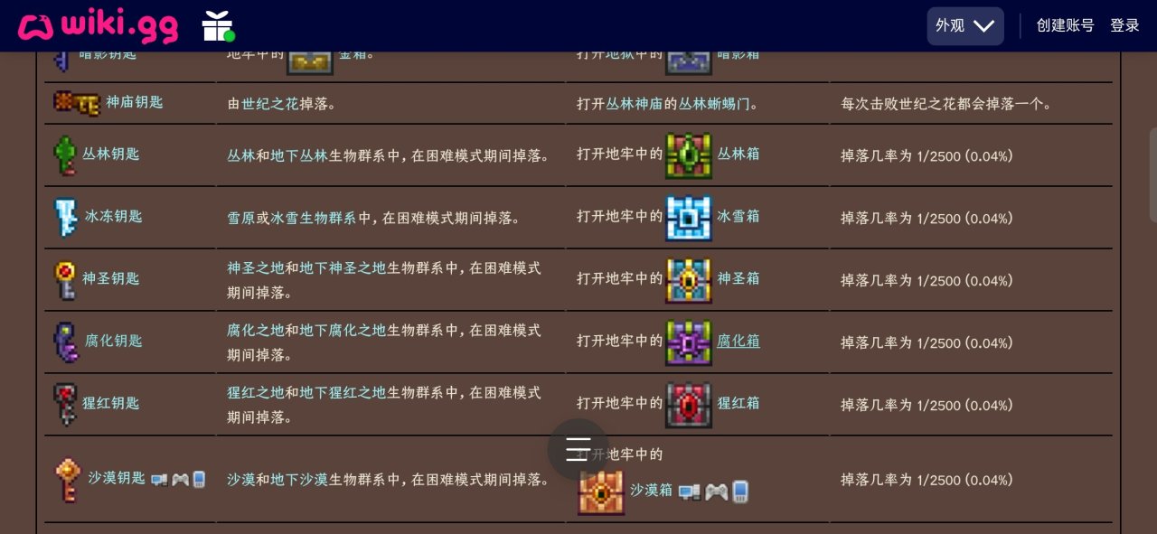 但是因爲我太久沒玩泰拉瑞亞了導致我也記不太清這些鑰匙的爆率了,只記得挺難的,所以只能請大佬在評論區補充描述了