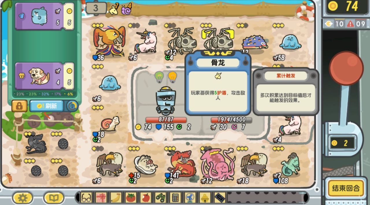 所以我们的目标,就是在有限的回合内,靠着商店里售卖的动物朋友来击败敌人。