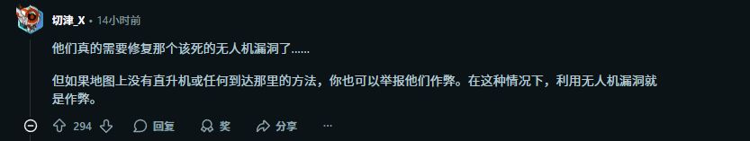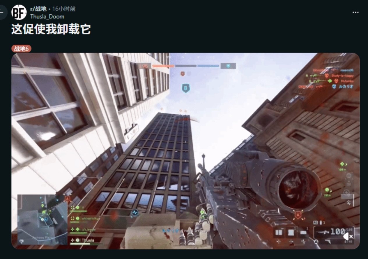 “御无人机飞行”BUG的操作门槛极低,只需一名队友召唤无人机,其他玩家站上无人机后,用游戏内的近战武器大锤不断敲击无人机,就能在物理引擎的判定下持续升高。通过控制敲击节奏,使用者甚至能实现悬停或下降,从而在无人机平台上自由移动、瞄准和射击。这一漏洞严重颠覆了游戏平衡。使用狙击枪的玩家依托无限飞行能力,占据常规难以到达的制高点,而地面玩家往往因视角限制难以发现和反击这些空中目标。面对这一长期未修复的漏洞,玩家群体表达了强烈不满。有玩家在社区直言,这种不公平的对抗体验“简直让人想要卸载游戏”。这并非《战地6》发售以来出现的唯一严重BUG。此前,游戏已被曝出存在步兵战车可无锁定警告击落飞机等影响平衡的漏洞。