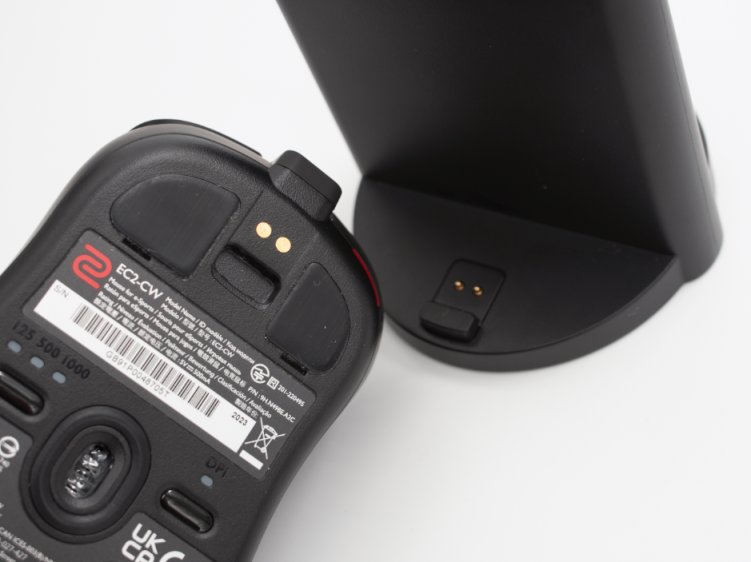 鼠标轻轻放上去底部的磁铁会自动吸住并对好触点,整个充电过程称不上优雅,但也确实方便。