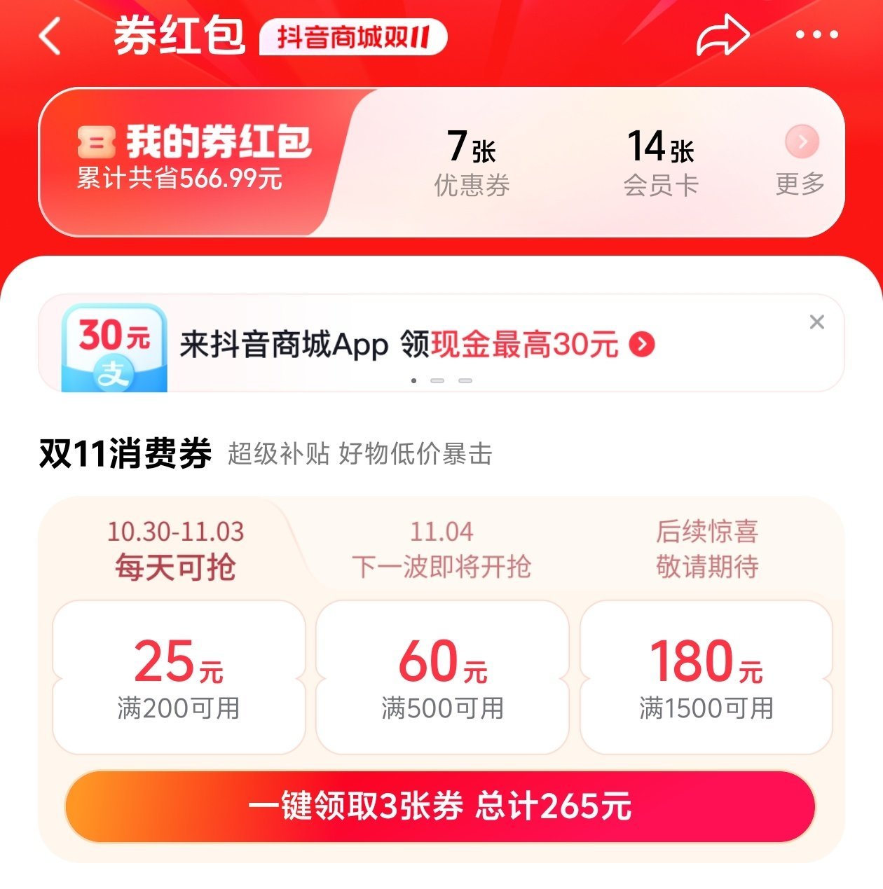 你将会在各种平台的广告刷到来自抖音的优惠券(5折到95折或者立减券)