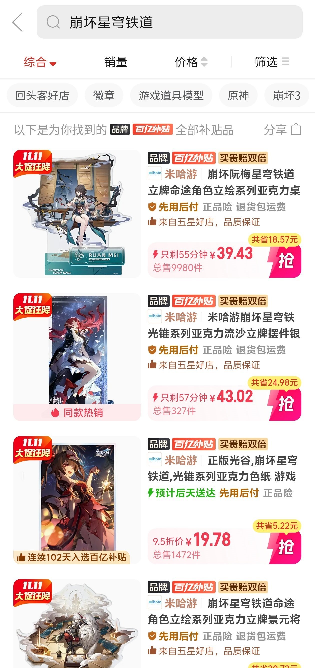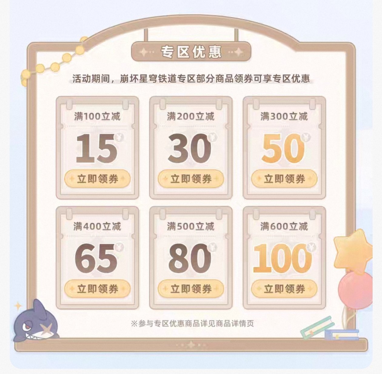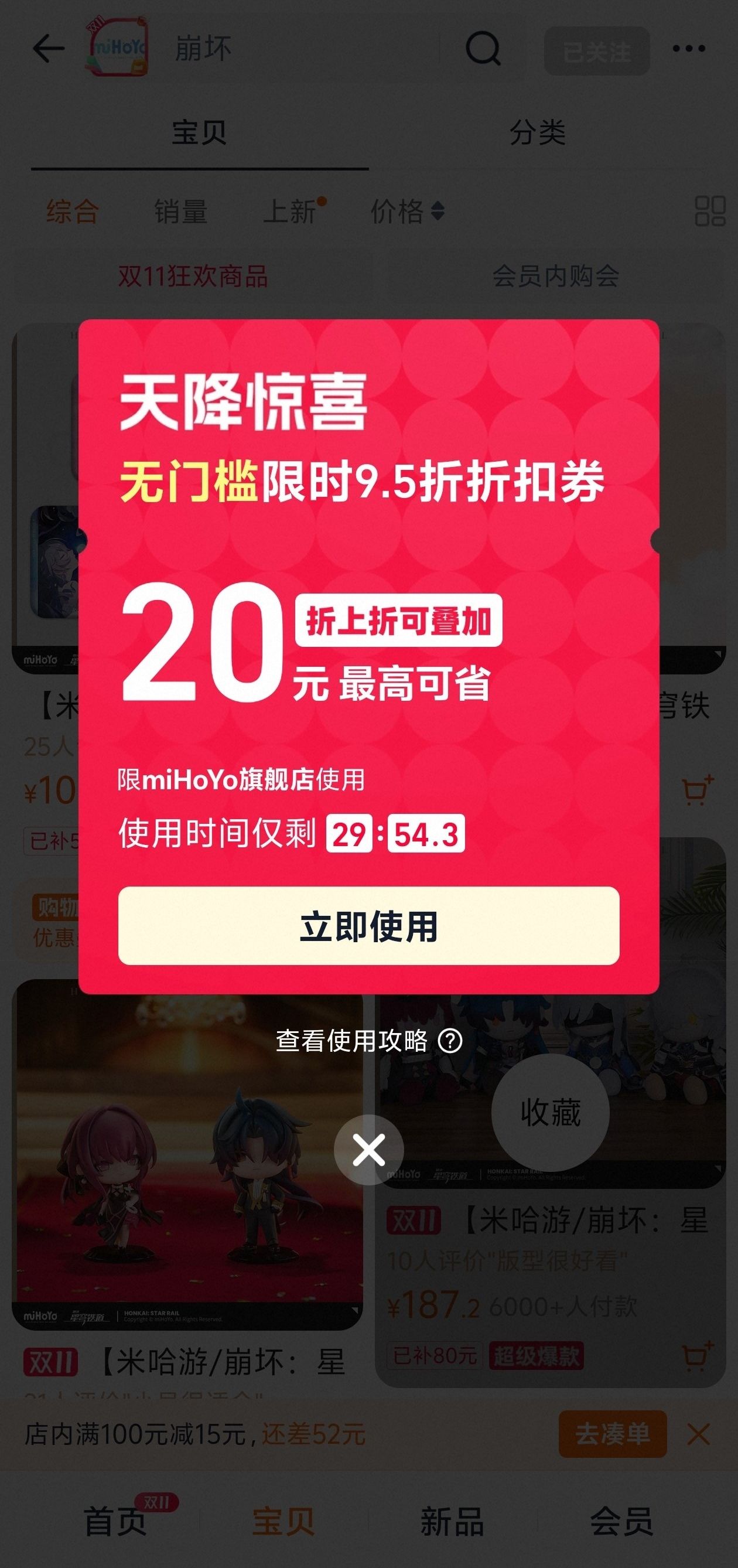 关注米哈游旗舰店和加入会员每次点进去都有95折券!(不过限时)