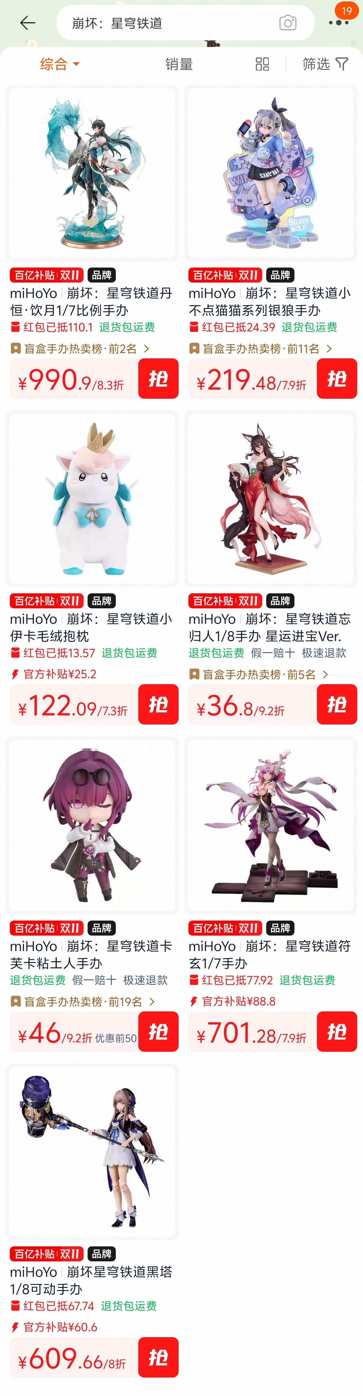 百亿补贴/聚划算+88VIP9折券+店铺95折券(部分)+米哈游商品固定满减券+淘金币
