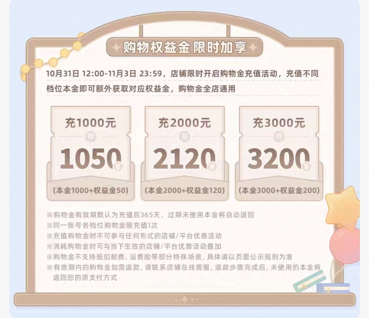 在某些特殊的活动时间还会出现这种充值金,但是一般只推荐买大宗商品(高达800以上)再选择充值这种东西,正常情况下不建议,因为充进去钱可不算自己的了