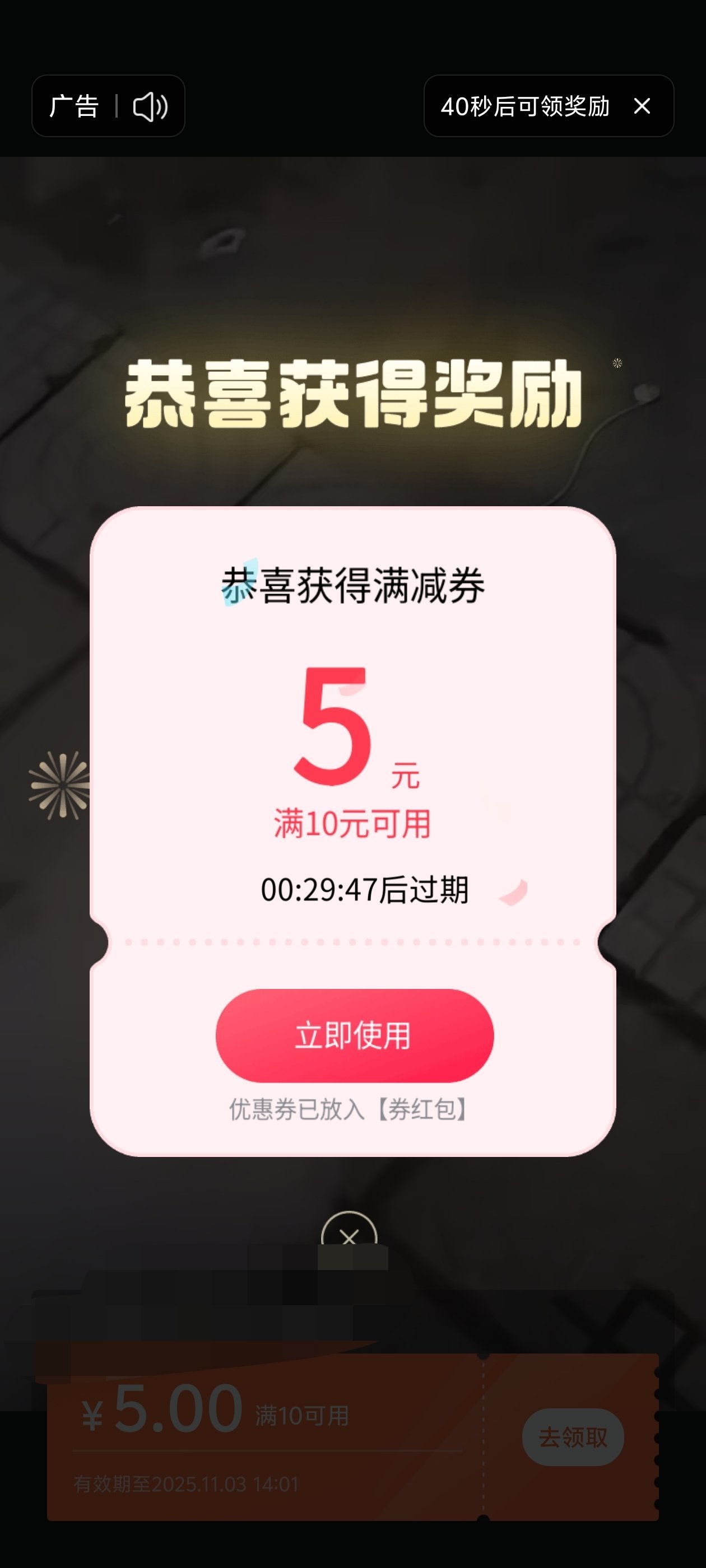 广告获得券和平台券可以叠加!