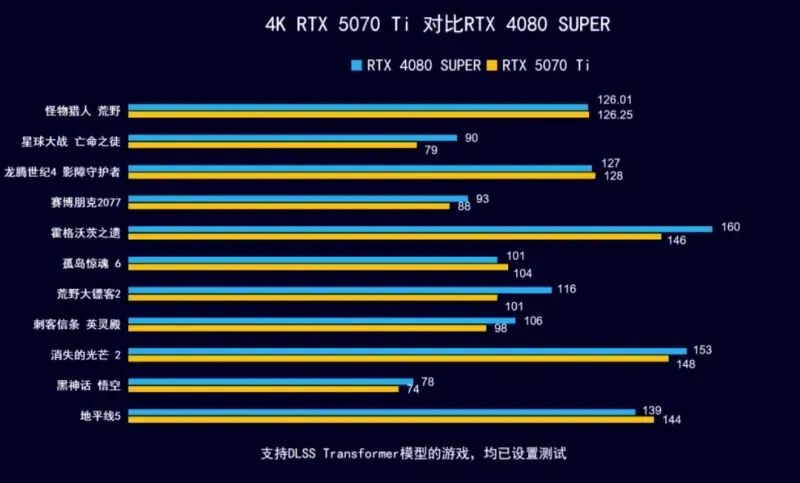 RTX 5070 Ti 16G 游戏性能=RTX 4080SUPER+DLSS 4 4倍插帧