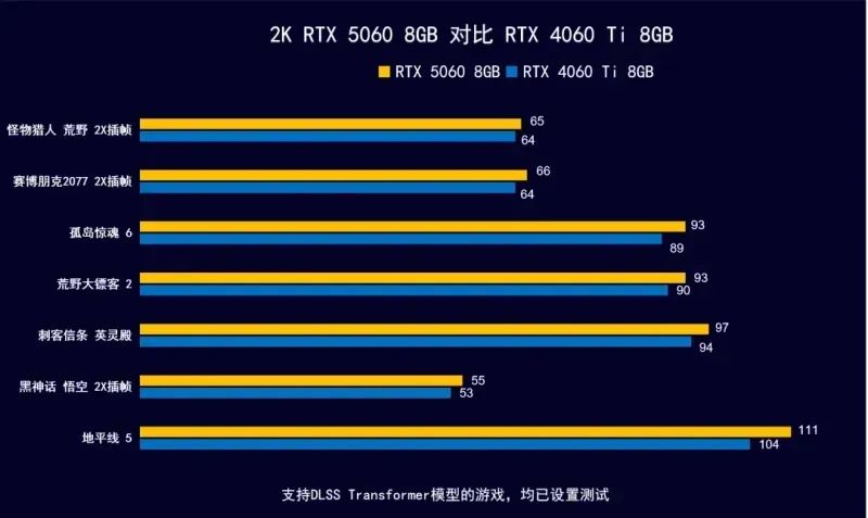 RTX 5060 8G:比4060Ti 8G强3%左右,支持DLSS 4 和4倍帧生成卡)