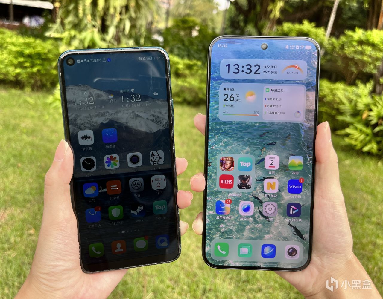 屏幕最高亮度对比,左是旧手机,右是IQOO15