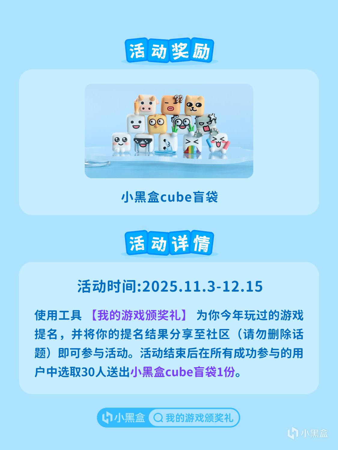 在所有成功参与活动的用户中随机抽取30人送出小黑盒cube盲袋1份。
