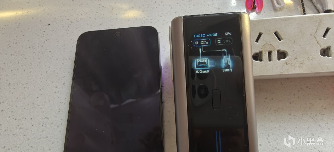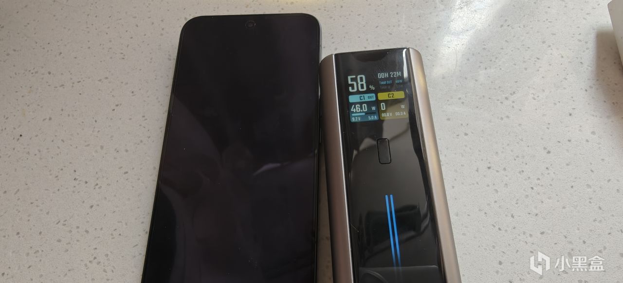 实际测试,充电宝和充电器模式我用最新款的IQOO15都可以达到48W附近。用一加13则是可以达到43W左右。两者相同的点是都可以激活对应手机的快充画面,双口同时输出的时候C1口的IQOO来到了44w,C2口的一加有22W。