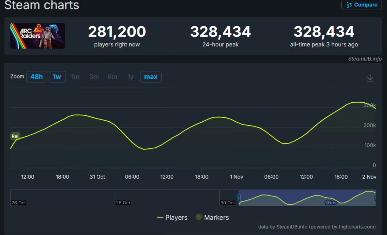 根据数据网站SteamDB统计,该游戏最高同时在线人数已突破32万,并持续保持增长态势。这一成绩超越了游戏首发时26.4万的在线峰值,显示出强劲的市场吸引力。Embark Studios由前DICE员工创建,曾开发热门游戏《THE FINALS》。该团队已被腾讯看中,去年腾讯与Nexon签约代理《THE FINALS》和《ARC Raiders》在中国大陆的发行。