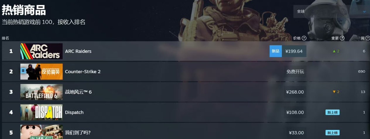 日前,由Nexon出品、Embark Studios开发的撤离射击游戏《Arc Raiders》在正式上线后迅速登顶Steam全球畅销榜榜首。