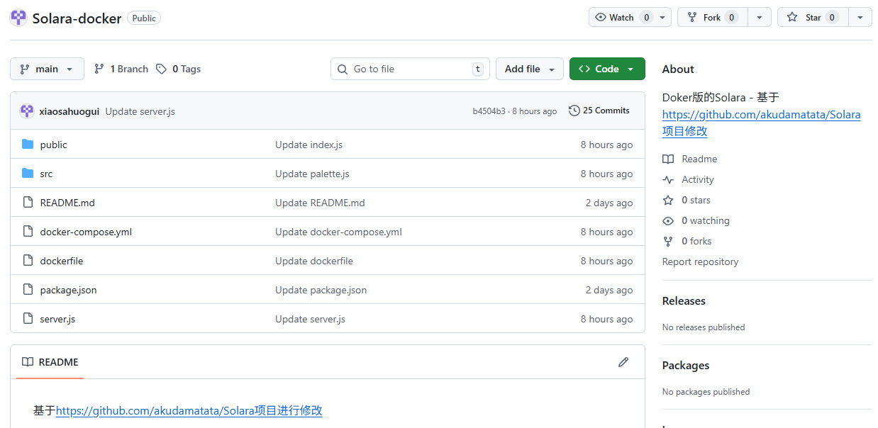 作者提供了完整的Dockerfile文件以及compose文件,但并没有提供构建好的镜像,所以熊猫这里也是借花献佛,将构建好的镜像上传到了ghcr.io上,你可以通过docker pull ghcr.io/panda-995/solara-music:latest来拉取镜像,同时也可以通过compose进行一键部署。