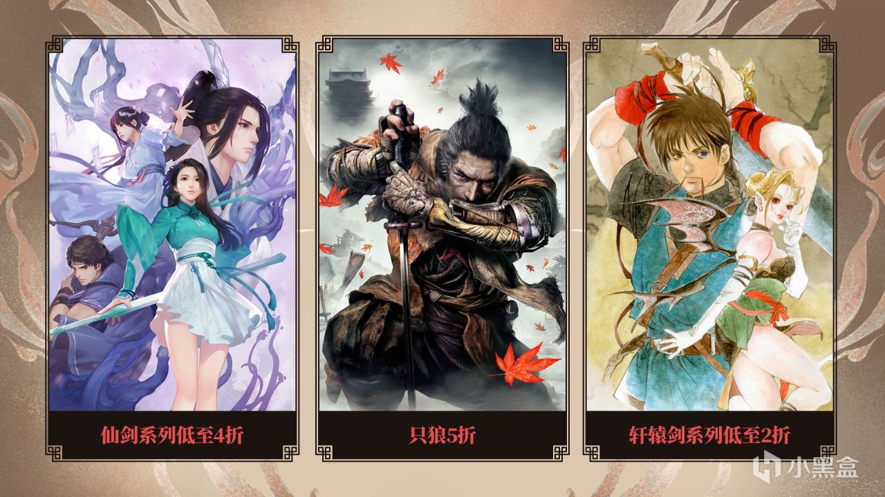 方块游戏携《仙剑奇侠传》系列、《轩辕剑》系列以及《只狼:影逝二度》等作品参加此次活动,并且特邀光谱资讯等厂商加入,为大家带来一批好价硬货。错过了秋促又不想蹲冬促?现在就是买买买的最佳时机!