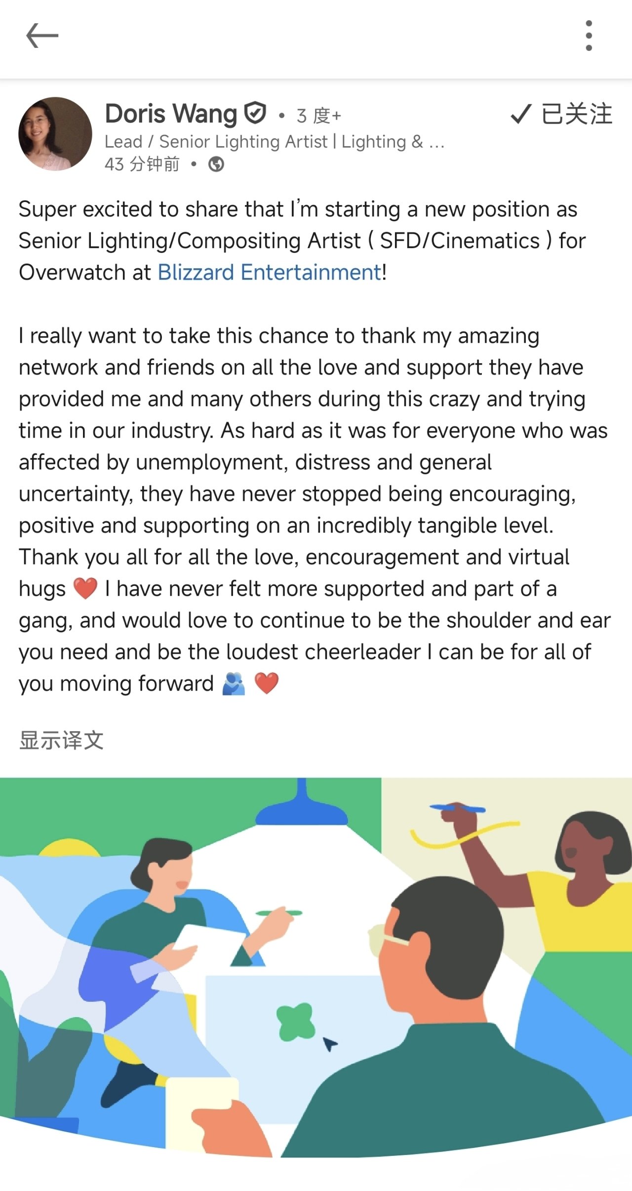 超级兴奋地宣布,我将入职暴雪娱乐,担任《守望先锋》的高级灯光/合成美术师!