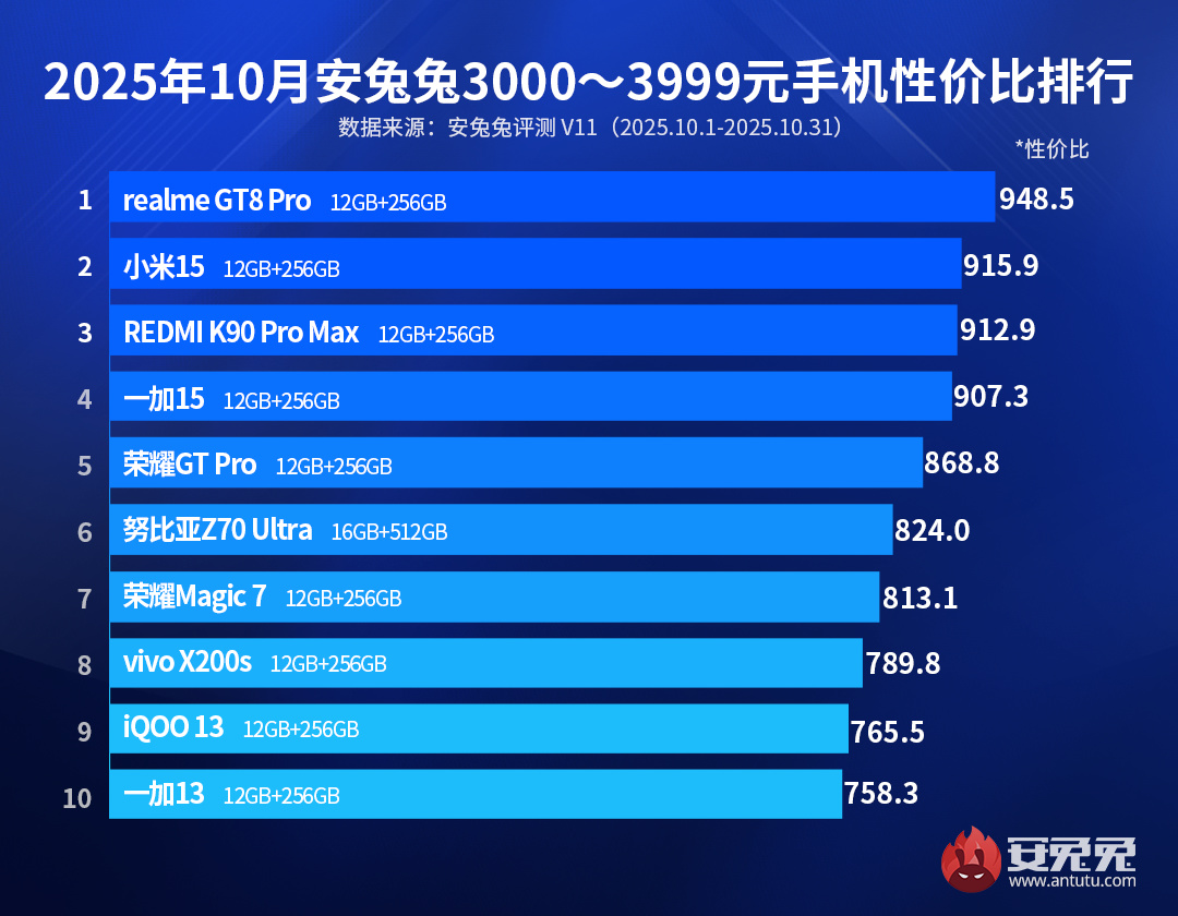 以上就是给大家节选的10月Android手机性价比榜内容,有兴趣的朋友可以搜索安兔兔官网查看完整榜单。