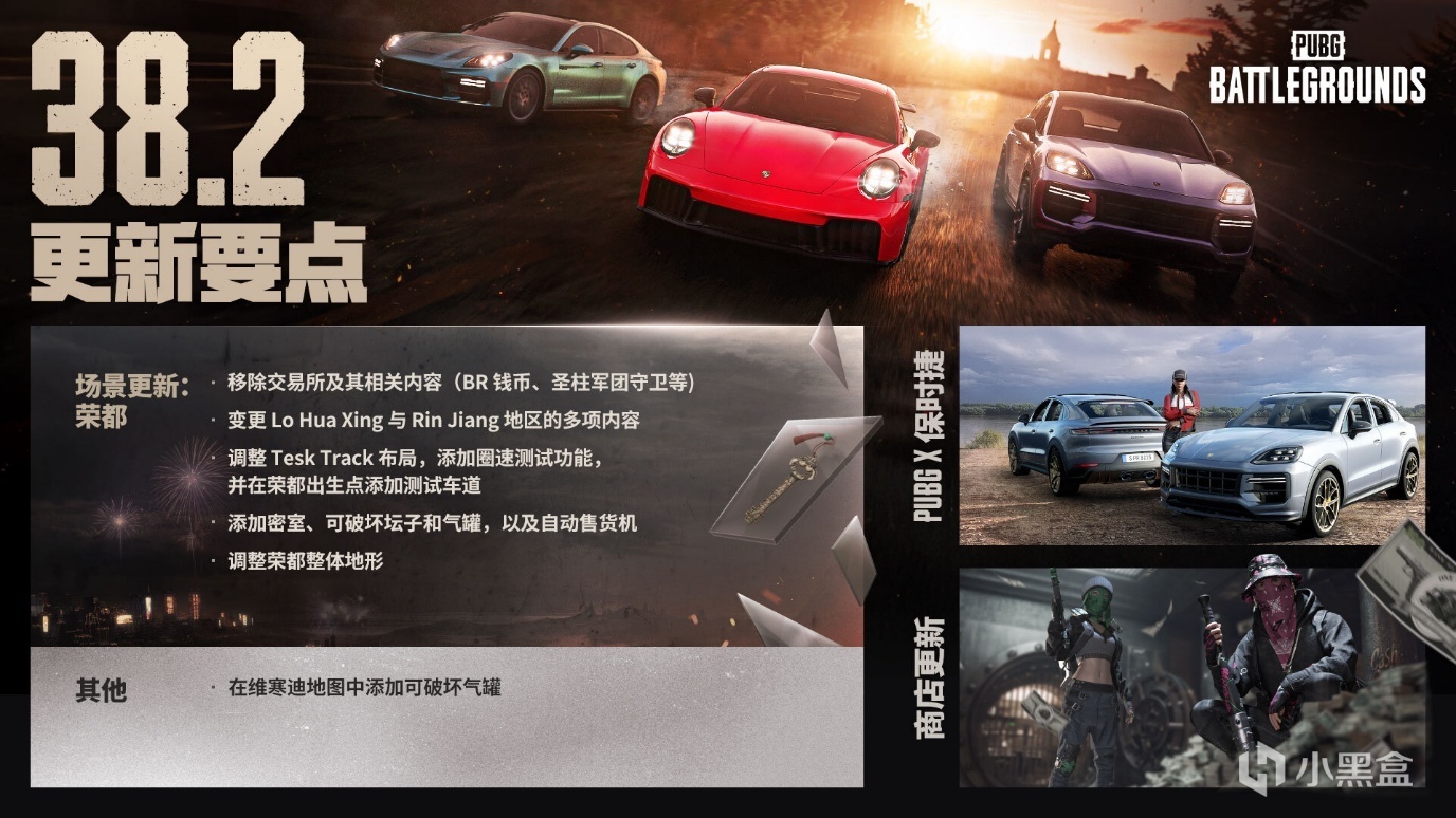 本次更新添加了新联动皮肤。详细信息请查看即将发布的 PUBG x 保时捷 联动公告。