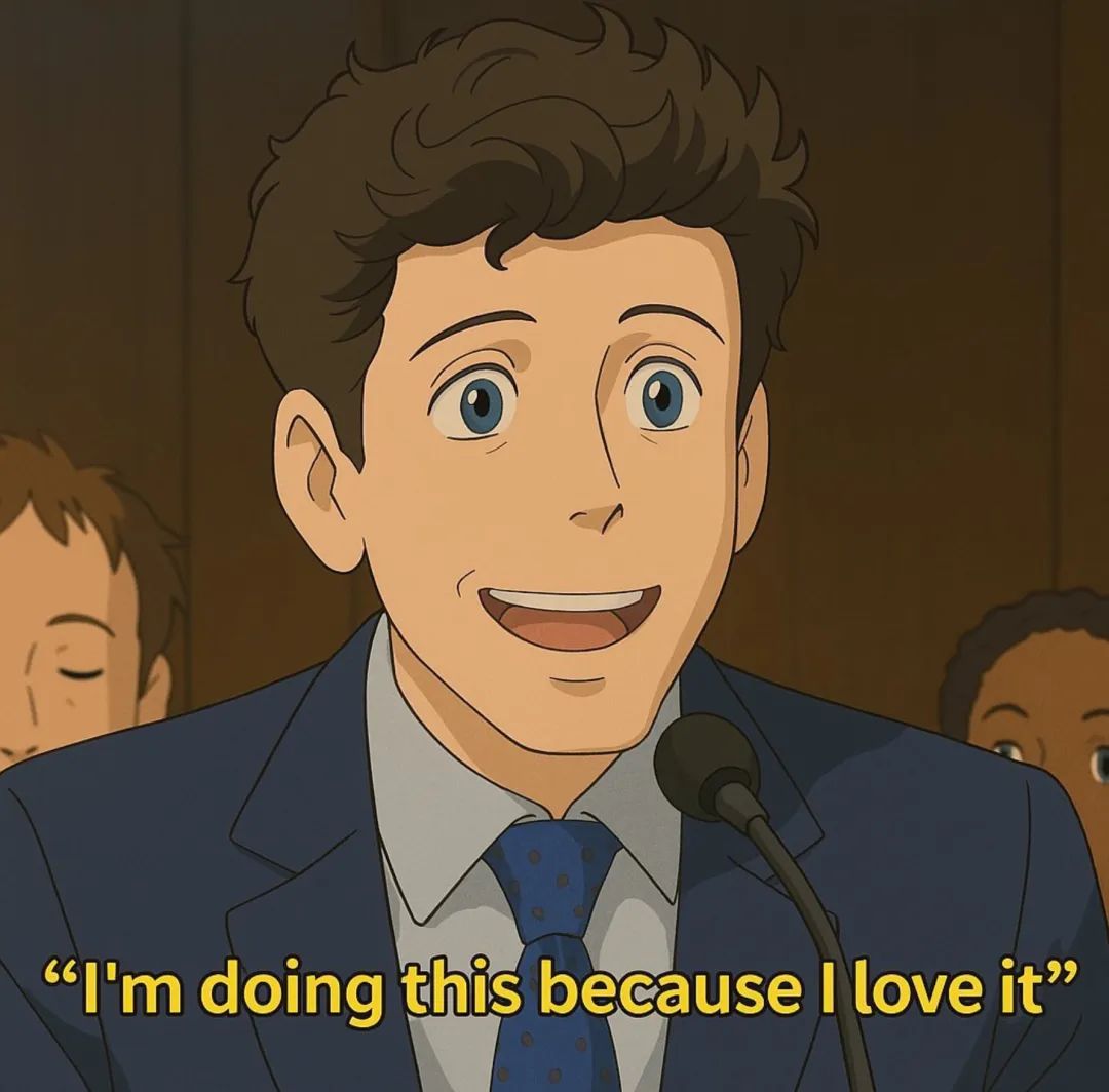 宮崎駿當年看到 AI 動畫都嫌棄,現在 Sora 拍出的短片,路人看着都覺得像電影片段。用戶可以隨時讓一隻狗在吉卜力風世界裏跳舞,連 Sam Altman 的頭像都變成了“小清新少年版吉卜力”。這畫風被玩得太過火,吉卜力肯定坐不住了。