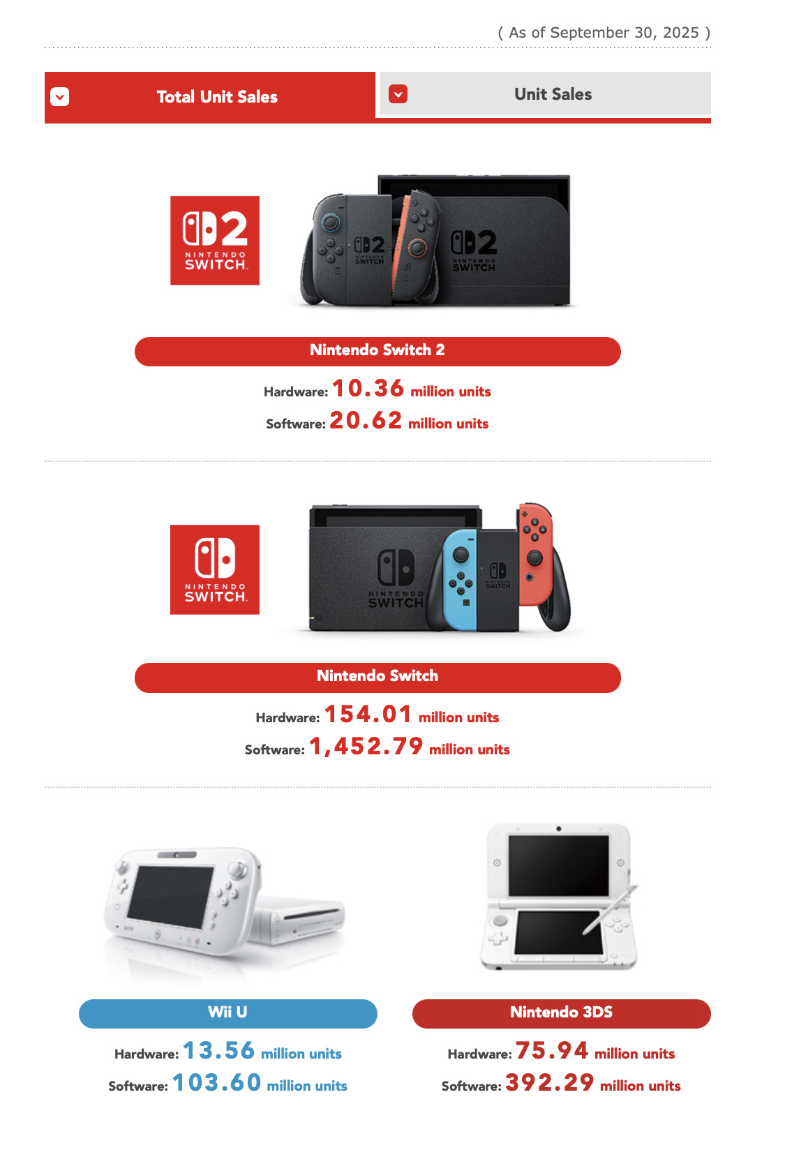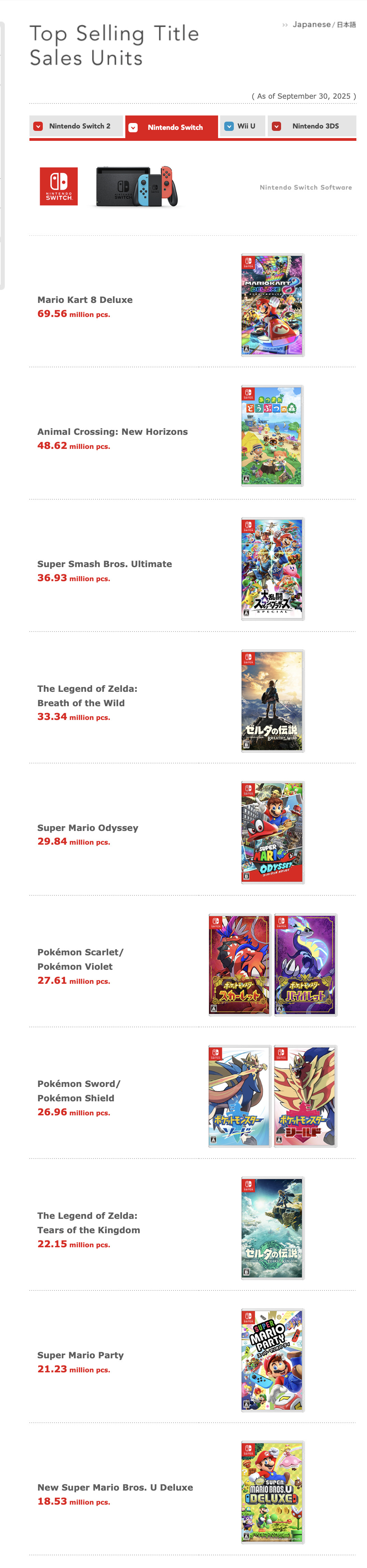 除此之外,Switch硬件销量达到1.5401亿台,软件销量突破14.5279亿份。