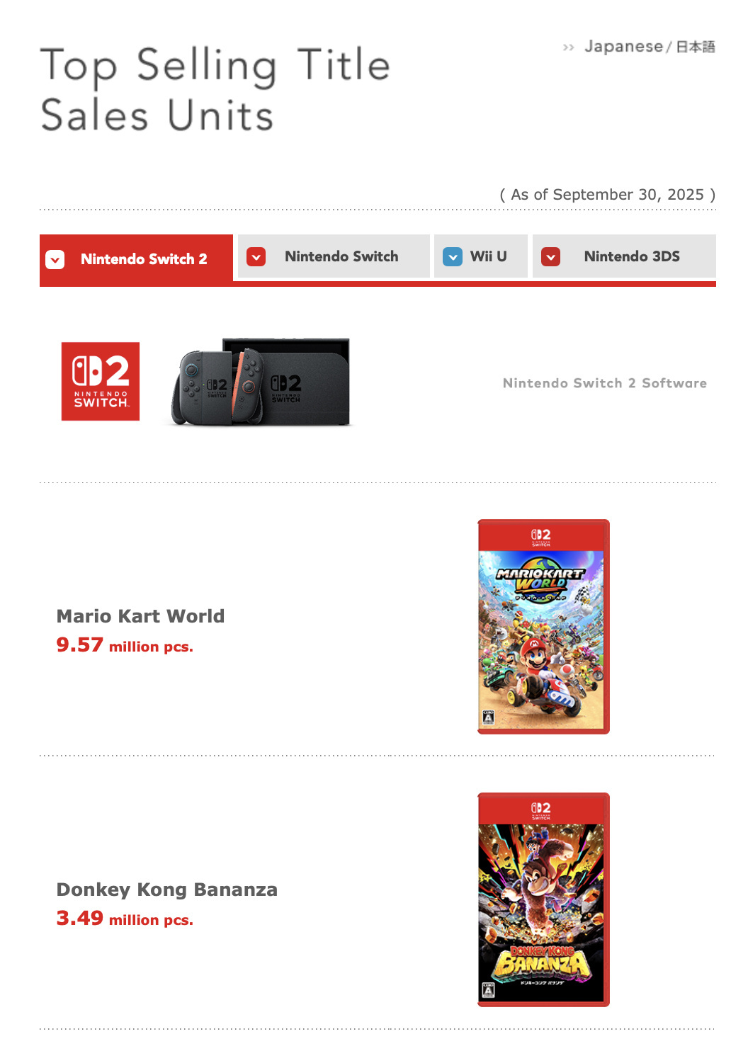 Switch 2游戏《咚奇刚:蕉力全开》销量突破349万份,《马里奥赛车:世界》销量达到957万。