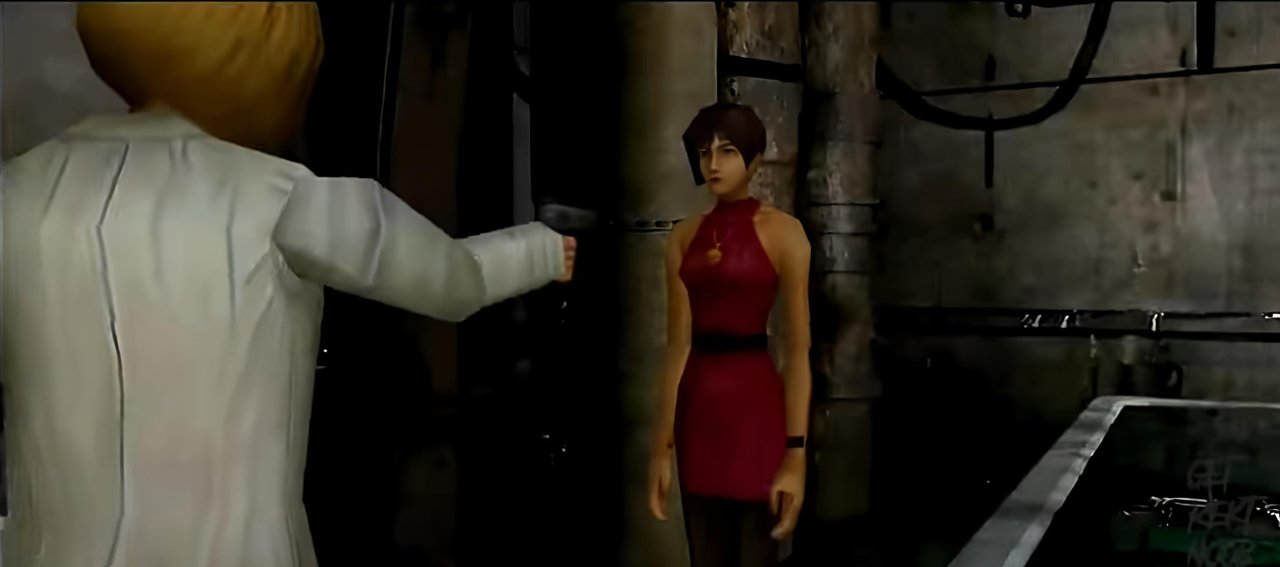 到了《生化危机2》,艾达终于以真人形象亮相:以寻找失踪的约翰为借口,实则潜入浣熊市搜寻G病毒,最终在警察局地下停车场与里昂相遇,两人在并肩行动中萌生微妙情愫。受限于1998年的游戏技术,彼时的建模虽显粗糙,但红色连衣裙与黑色丝袜的经典搭配,已初步勾勒出她性感又危险的气质。