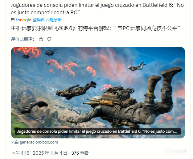 自發售以來,《戰地6》一直秉持着更加包容的理念,默認開啓跨平臺聯機功能,但並非所有玩家都對此感到滿意。近幾個小時來,許多Xbox和PS5玩家表達了不滿,認爲這與PC玩家相比存在明顯的不平衡,尤其是在諸如全新“大逃殺”等競技模式中。