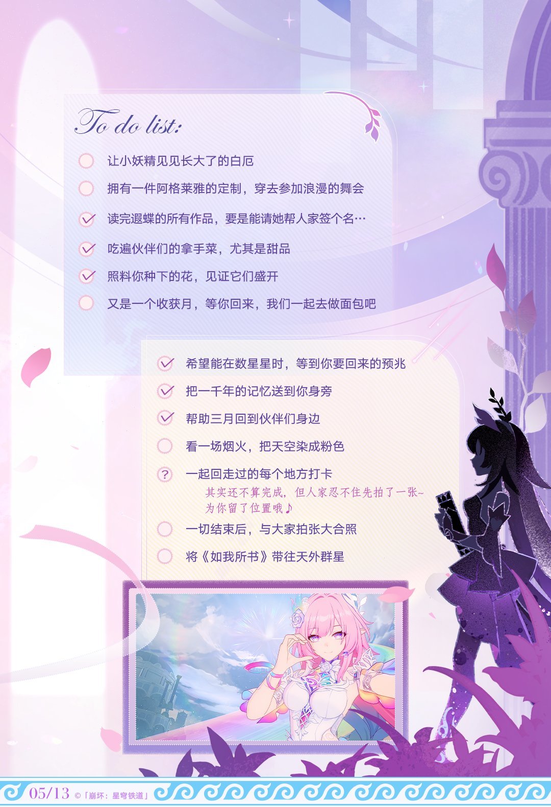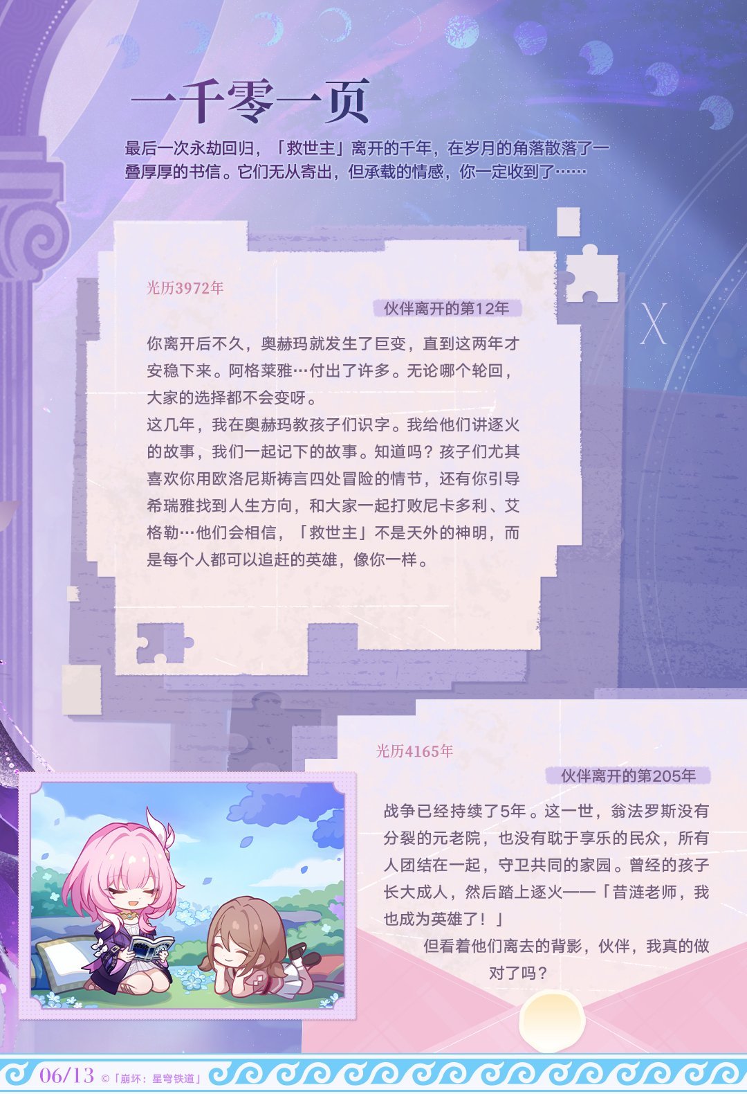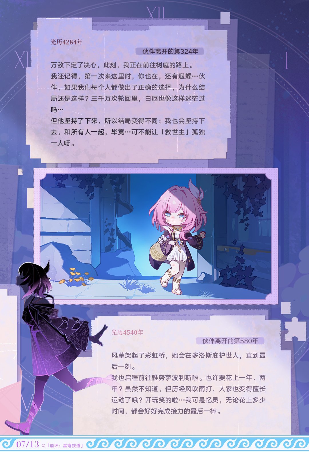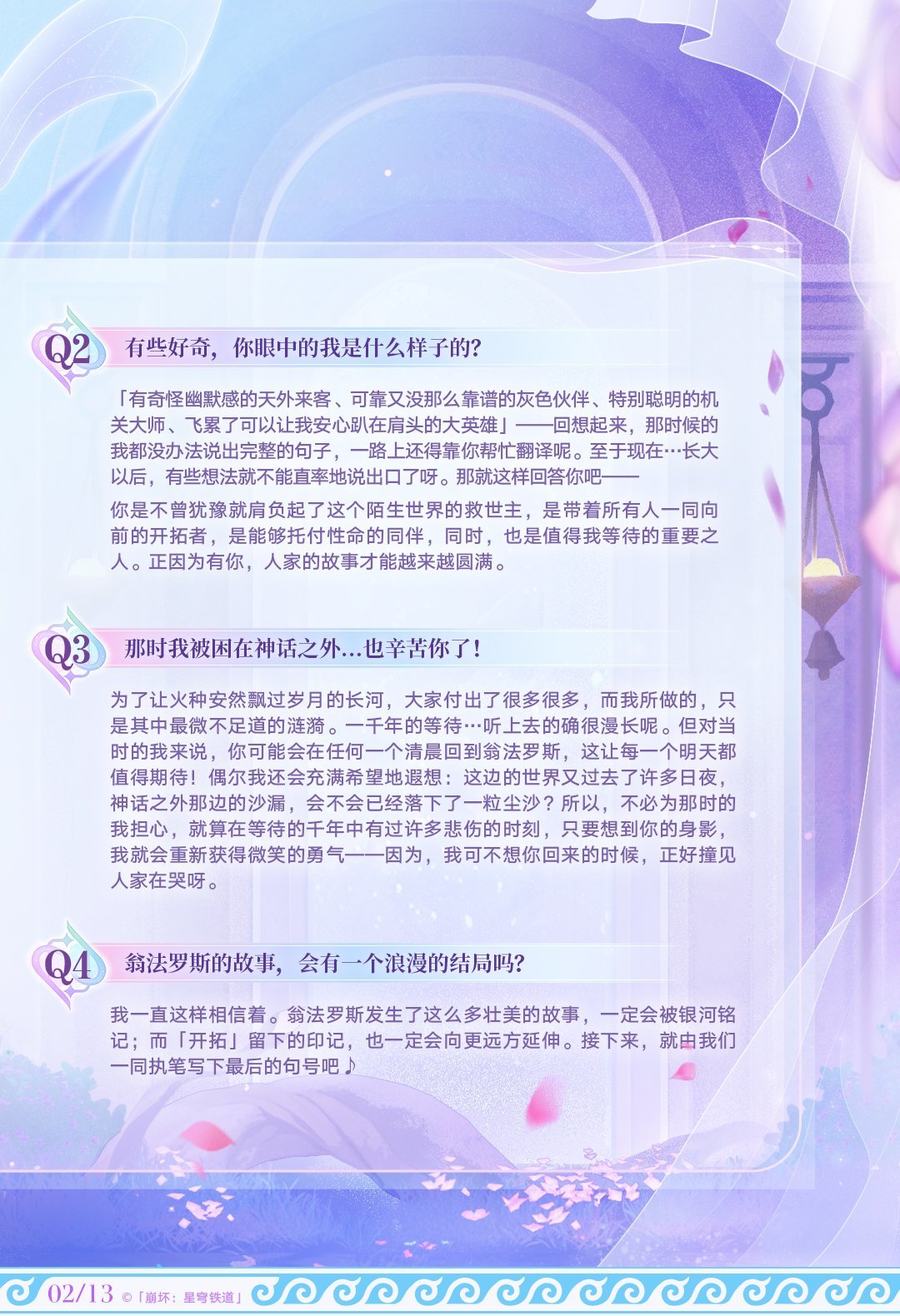 「翁法羅斯發生了這麼多壯美的故事,一定會被銀河銘記;而『開拓』留下的印記,也一定會向更遠方延伸。接下來,就由我們一同執筆寫下最後的句號吧♪」