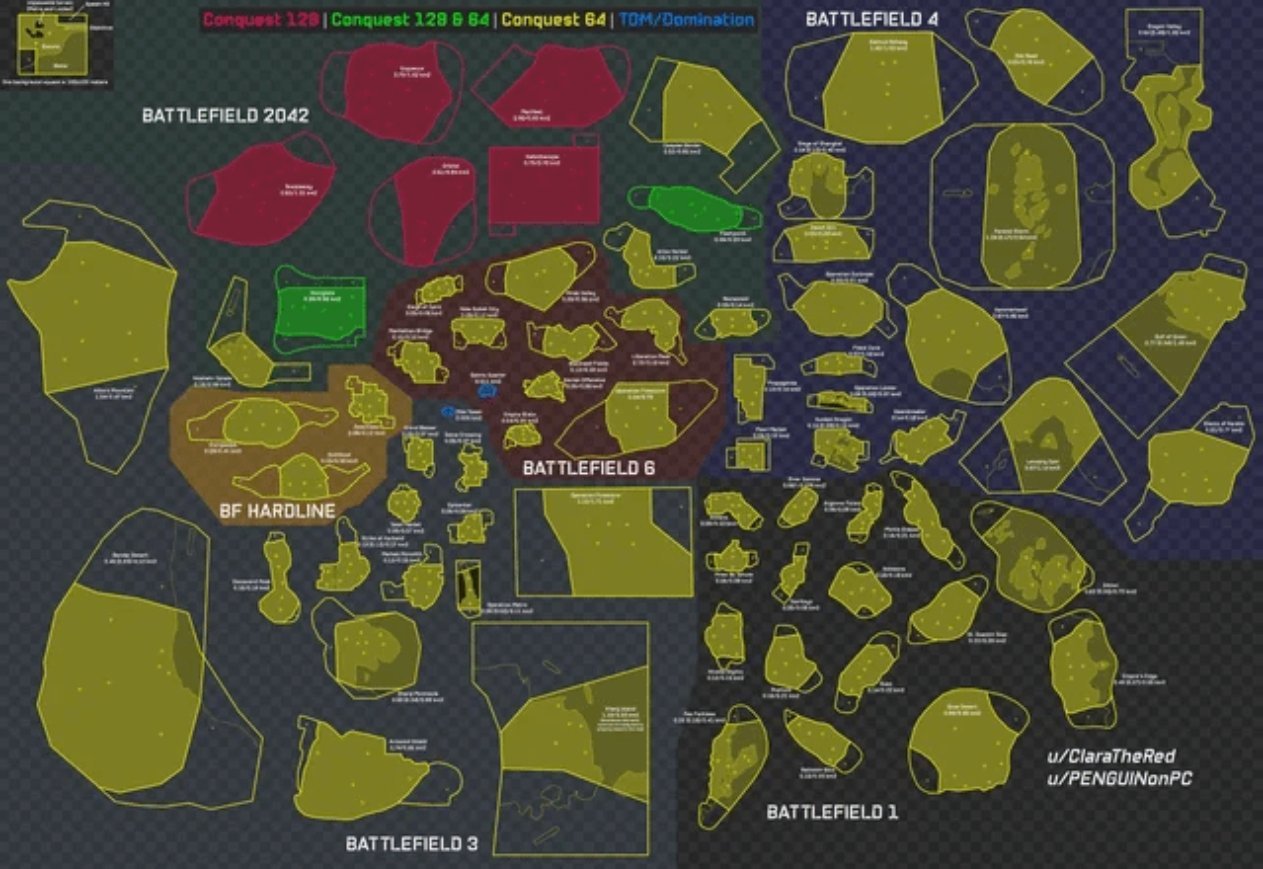 《战地6》地图面积相较前作明显缩水。这一由玩家社区通过数据可视化分析发现的结论,为游戏发布以来的相关抱怨提供了实证。