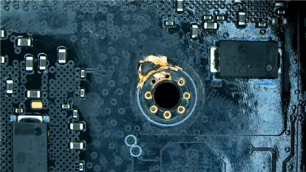 技术人员依旧不愿放弃,拆除了疑似故障的显存模块,但短路依然存在,证明了之前的假设。